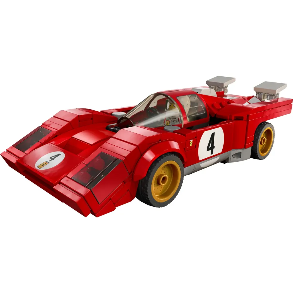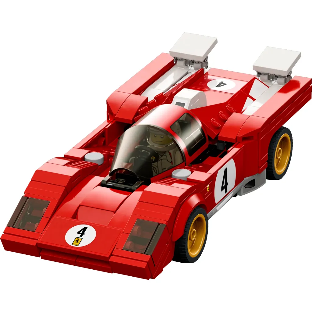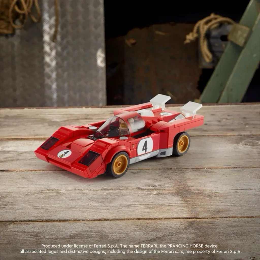 1970 Ferrari 512 M i rött från LEGO och serien Speed Champions. En minifigur som kan köra den klassiska italienska sportbilen medföljer.