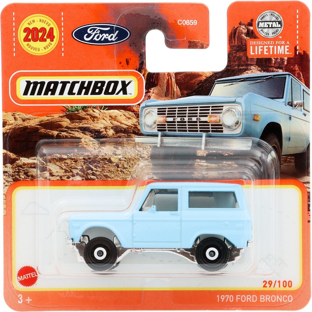 Ljusblå 1970 Ford Bronco från Matchbox.