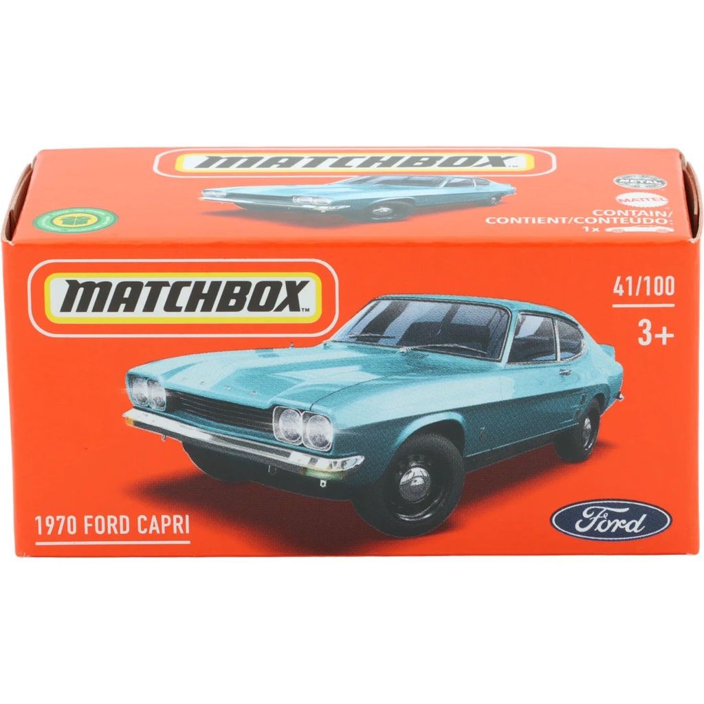 1970 Ford Capri från Matchbox och serien Power Grab där denna leksaksbil är bil nummer 41/100. Bilen ingår i E-case 2021.