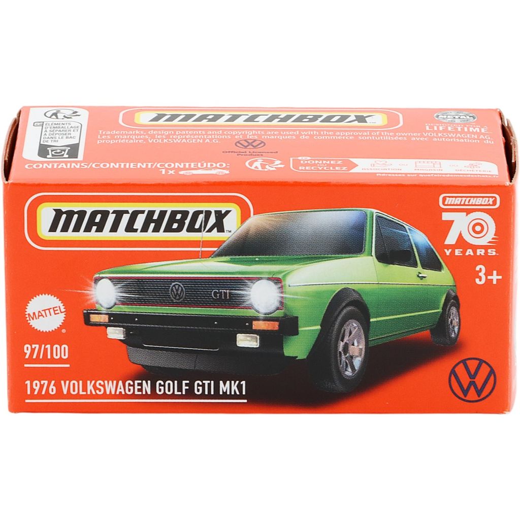 Grön 1976 Volkswagen Golf GTI MK1 från Matchbox och serien Power Grab där denna leksaksbil är bil nummer 97/100.