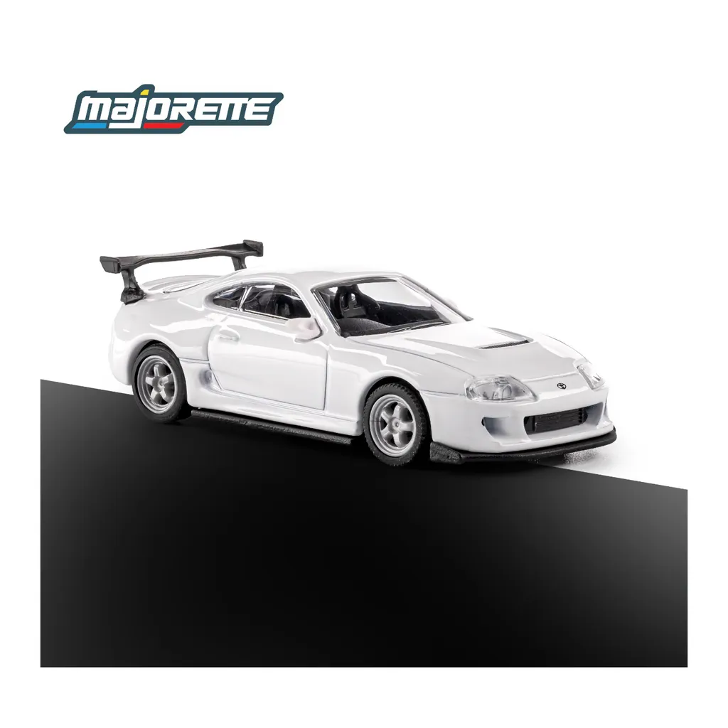 1995 Toyota Supra (A80) i vitt från Majorette och serien "Collection Series". Bilen är tillverkad helt i metall och hjulen har gummidäck.
