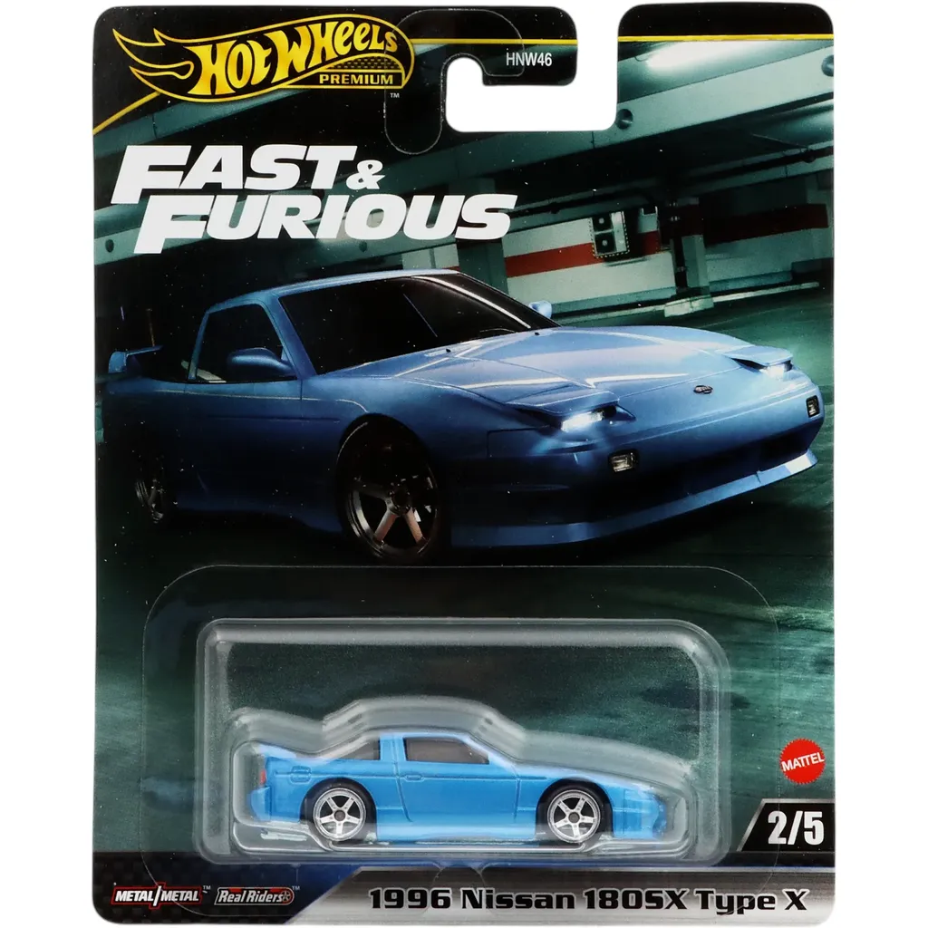 1996 Nissan 180SX Type X från Hot Wheels och serien Fast & Furious (Premium, Mix 4, 2024) där denna bil är nummer 2/5.