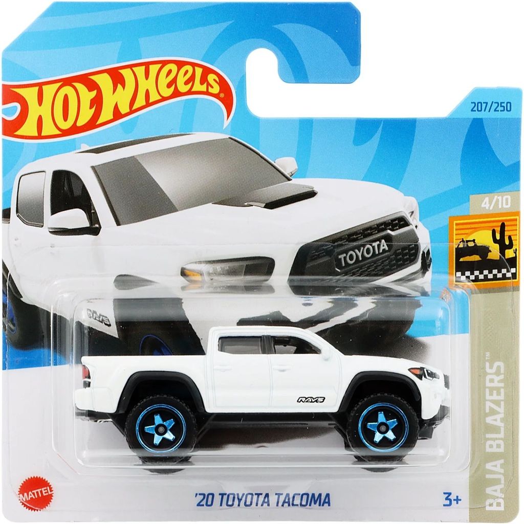’20 Toyota Tacoma från Hot Wheels och serien Baja Blazers där denna leksaksbil är bil nummer 4/10. Bilen är nummer 207/250 från 2023 och har ett short card (5785). Bilens artikelnummer är HKG75. Just denna bil ingår i bland annat M case 2023.