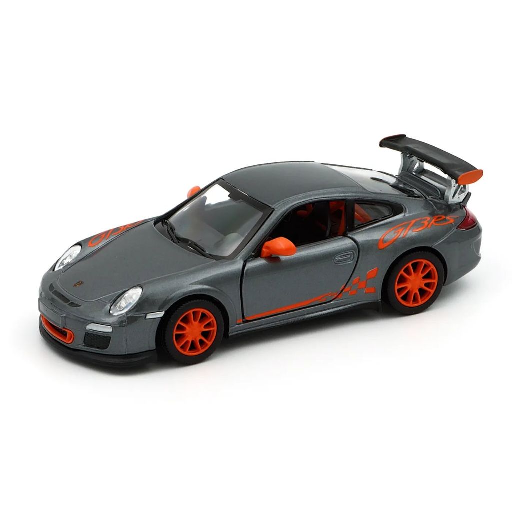 2010 Porsche 911 GT3 RS från Kinsmart för lek eller samling. Skalan är 1:36 (ca 12,7 cm). Öppningsbara dörrar och pullback.