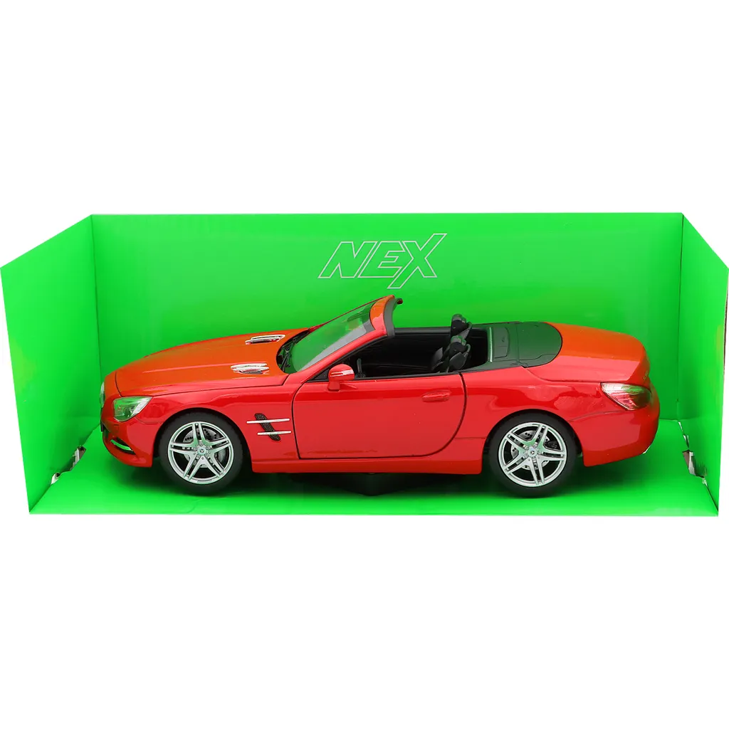 Röd 2012 Mercedes-Benz SL 500 från Welly och serien NEX Models i skala 1:24. Öppningsbara dörrar och motorhuv.