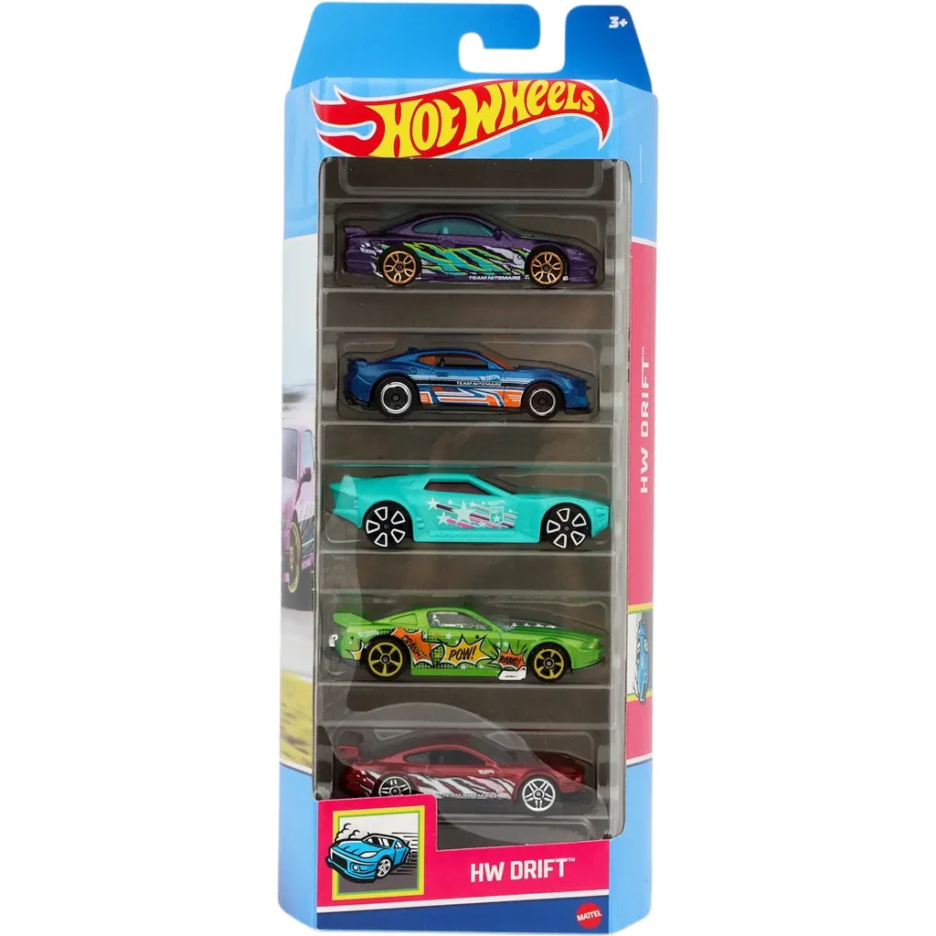 5-pack med leksaksbilar från Hot Wheels. Detta pack heter HW Drift och innehåller bilar anpassade för drifting.