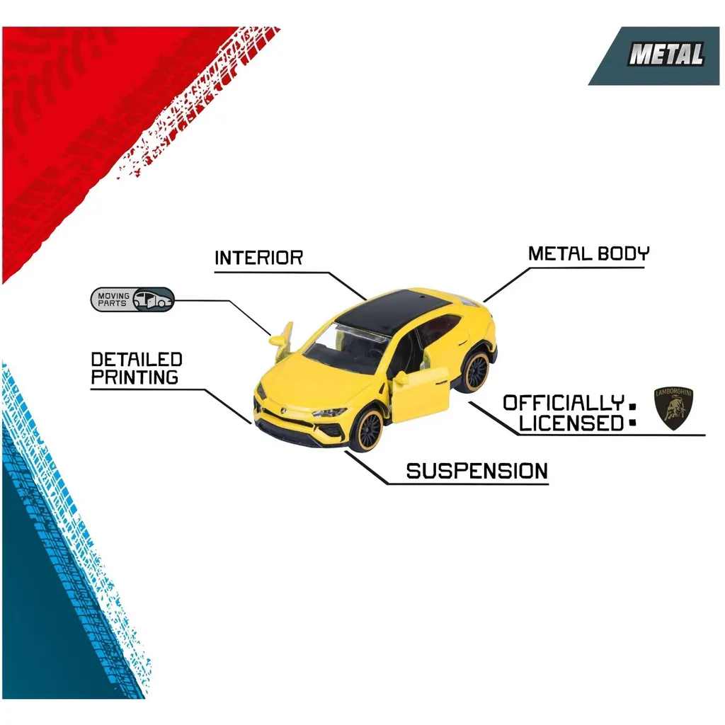Bilarna är tillverkade i metall med plastdetaljer med officiell licens av Lamborghini S.p.A, Italy.