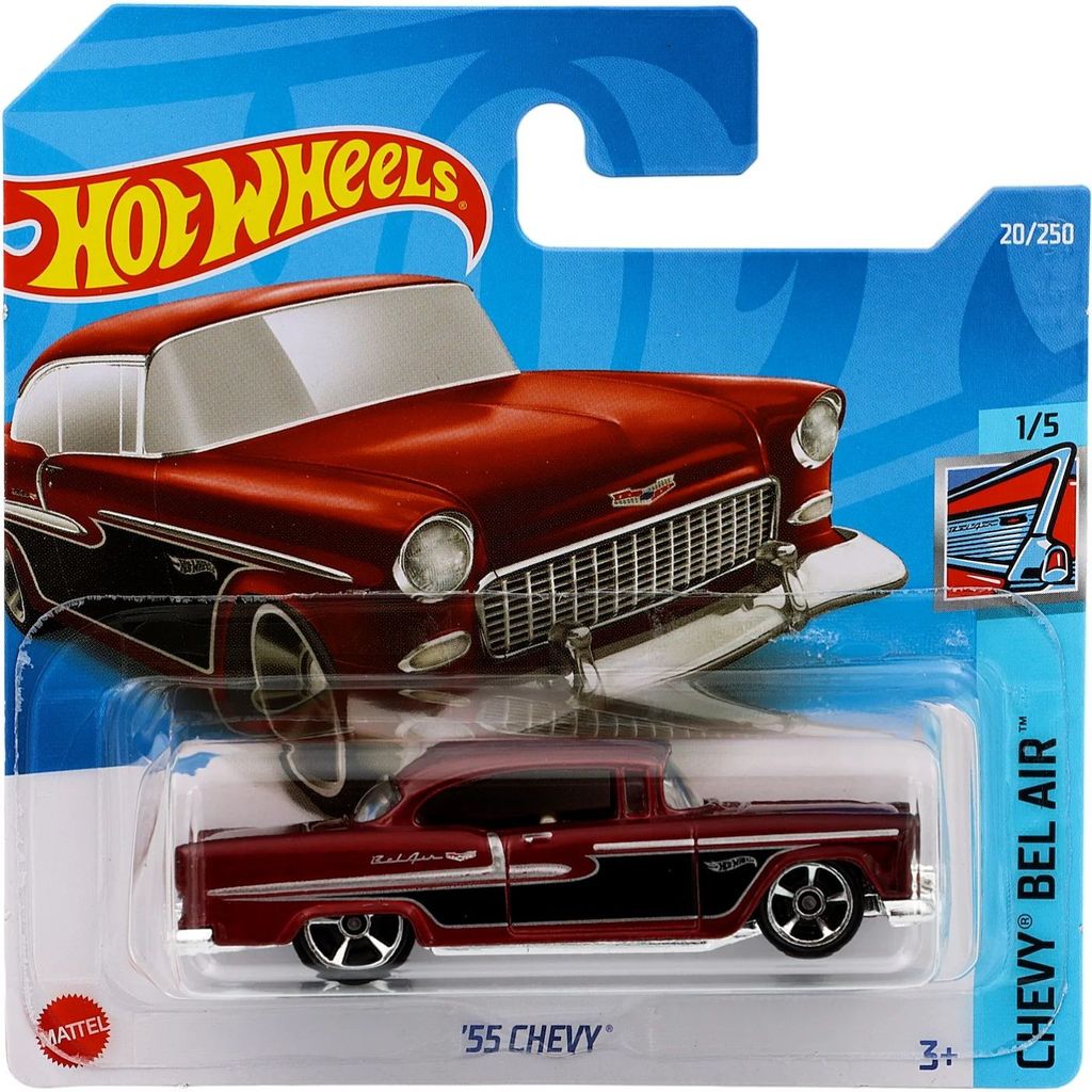 ?55 Chevy från Hot Wheels och serien Chevy Bel Air där denna leksaksbil är bil nummer 1/5. Bilen är nummer 20/250 från 2022 och har ett short card (5785).