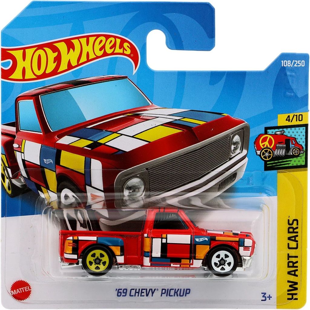 ?69 Chevy Pickup från Hot Wheels och serien HW Art Cars där denna leksaksbil är bil nummer 4/10. Bilen är nummer 108/250 från 2022 och har ett short card (5785).