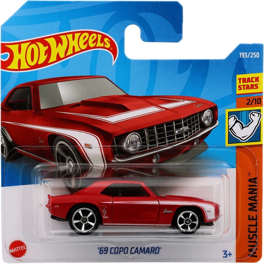 ?69 Copo Camaro från Hot Wheels och serien Muscle Mania där denna leksaksbil är bil nummer 2/10. Bilen är nummer 193/250 från 2022 och har ett short card (5785).