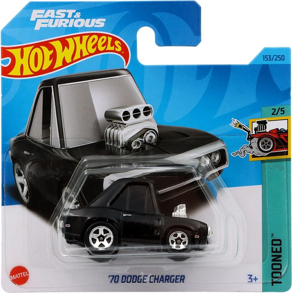 ?70 Dodge Charger från Hot Wheels och serien Tooned där denna leksaksbil är bil nummer 2/5. Bilen är nummer 153/250 från 2023 och har ett short card (5785).