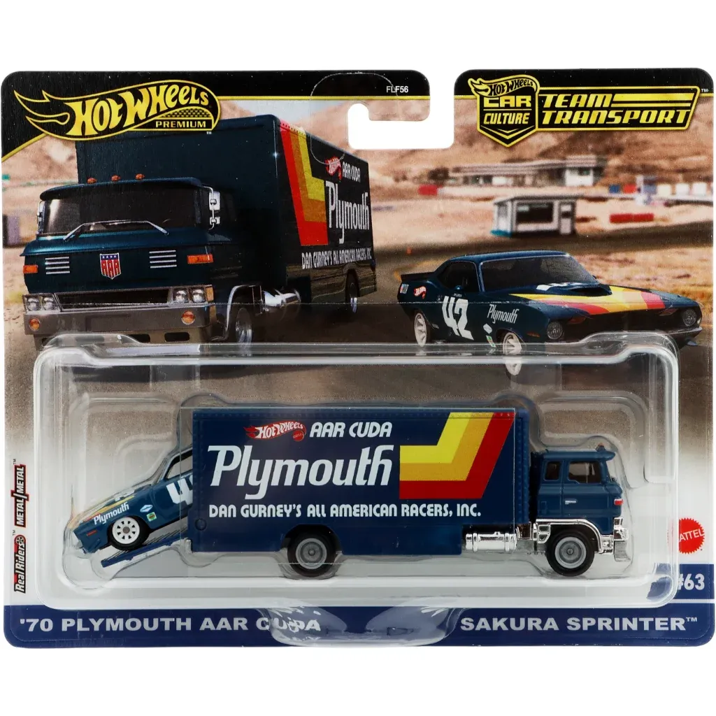 '70 Plymouth AAR Cuda och transportbilen Sakura Sprinter som en Team Transport (#63) från Hot Wheels Premium.