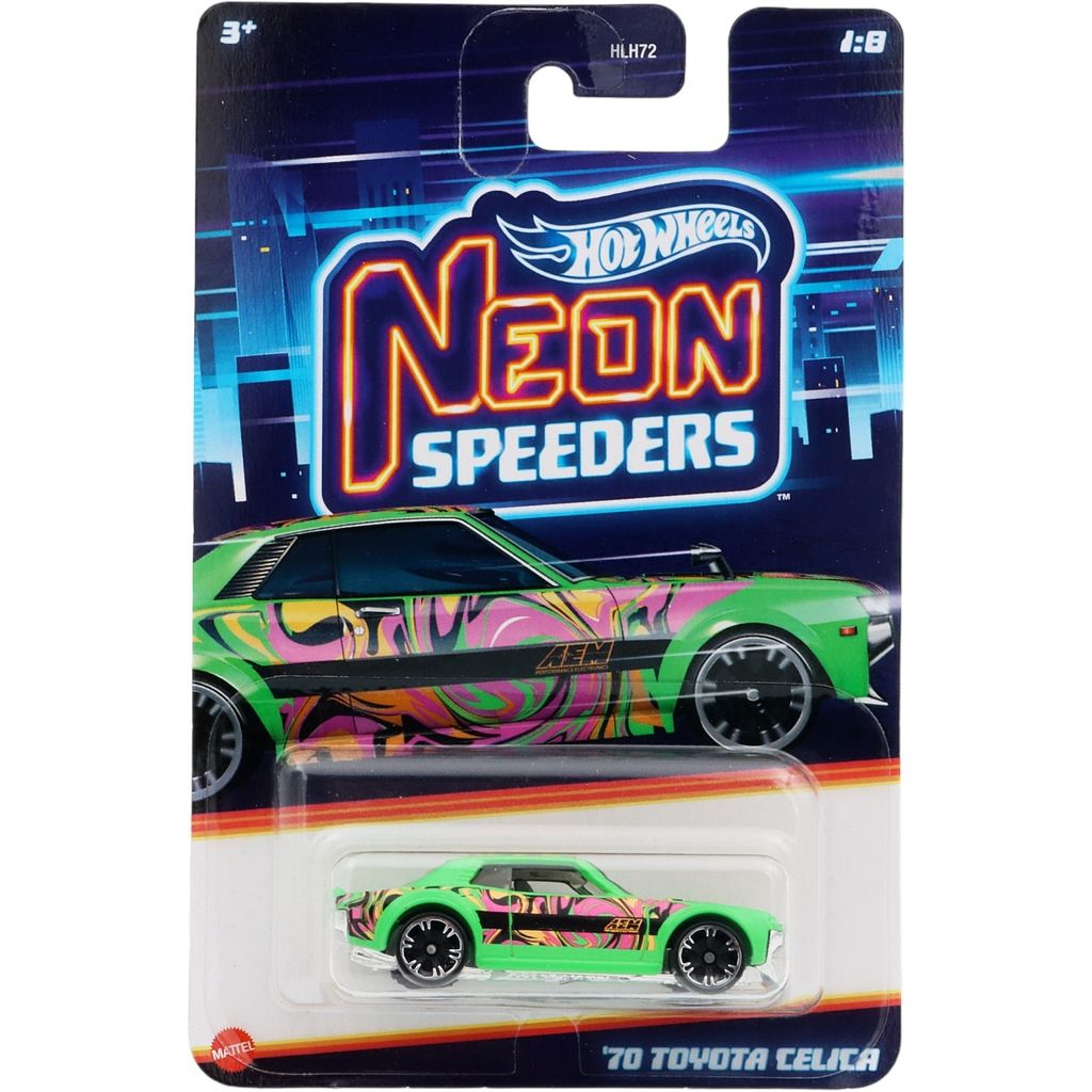 Grön '70 Toyota Celica från Hot Wheels och serien Neon Speeders där denna bil är nummer 1 av 8 i serien.