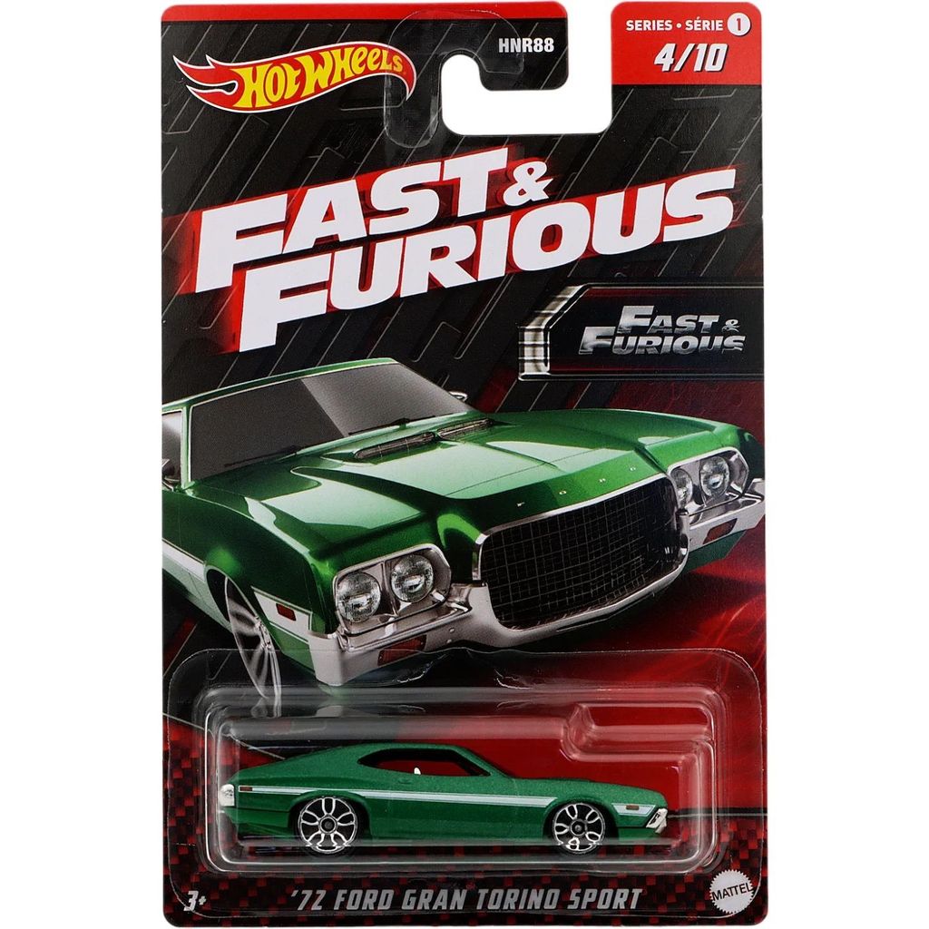 Grön ’72 Ford Gran Torino Sport från Hot Wheels och serien Fast & Furious där denna Ford är bil 4/10 i Series 1 2023.