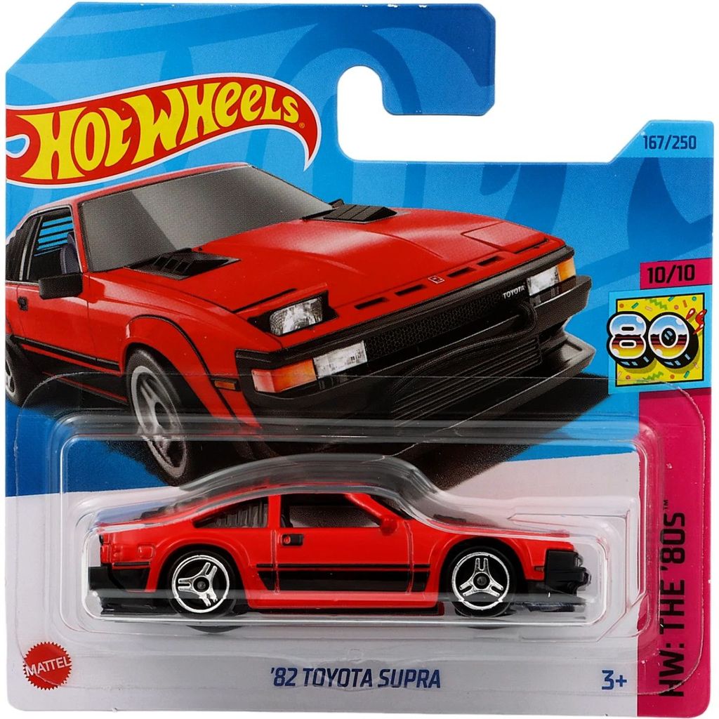 '82 Toyota Supra från Hot Wheels och serien HW: The ?80s där denna leksaksbil är bil nummer 10/10. Bilen är nummer 167/250 från 2023 och har ett short card (5785).