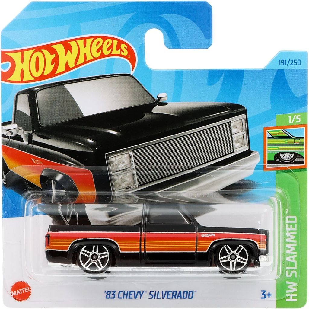 83 Chevy Silverado från Hot Wheels och serien HW Slammed där denna pickup är bil nummer 1/5. Bilen är nummer 191/250 från 2023 och har ett short card (5785). Bilens artikelnummer är HKJ06. Just denna bil ingår i bland annat L case 2023.