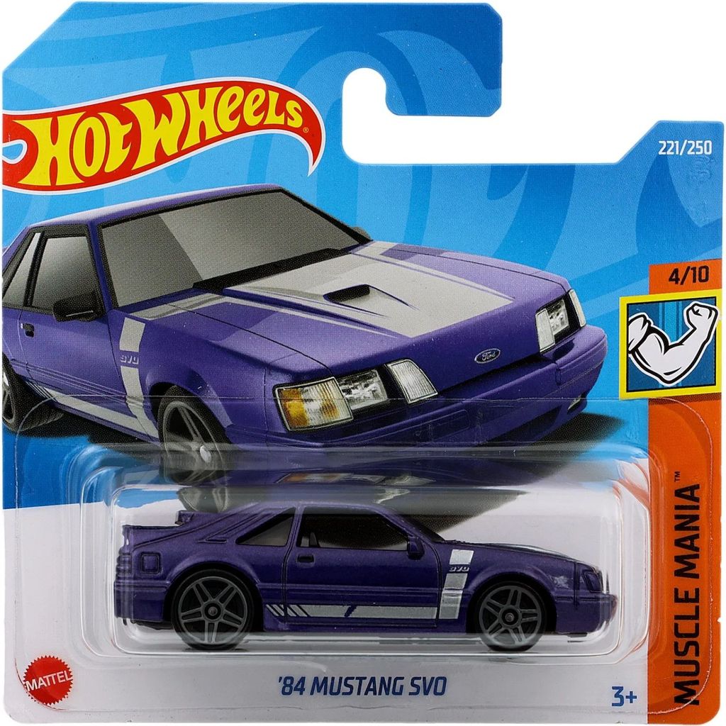 ?84 Mustang SVO från Hot Wheels och serien Muscle Mania där denna leksaksbil är bil nummer 4/10. Bilen är nummer 221/250 från 2022 och har ett short card (5785).