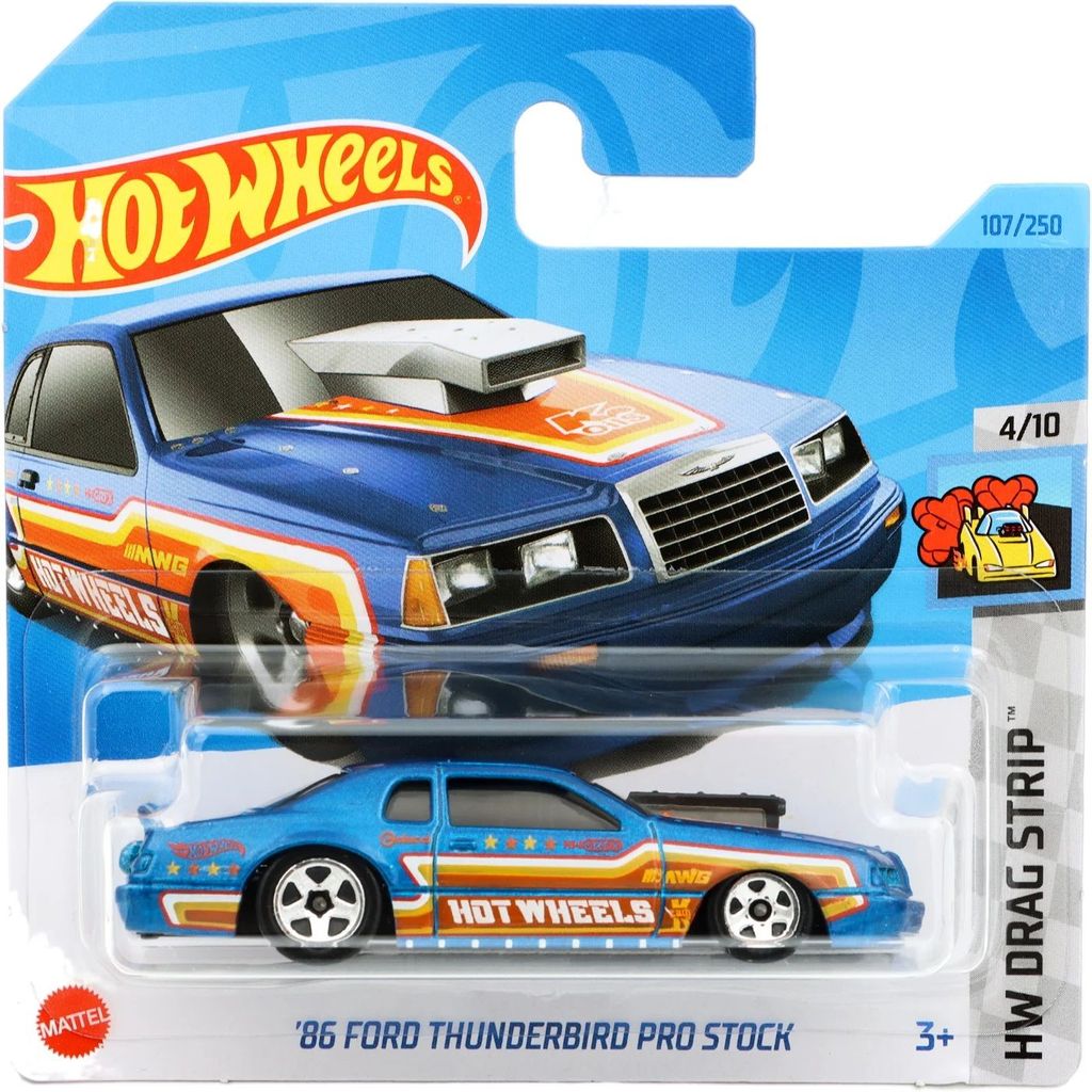 ?86 Ford Thunderbird Pro Stock från Hot Wheels och serien HW Drag Strip där denna leksaksbil är bil nummer 4/10. Bilen ingår i F-case 2023 (short cards / 5785).