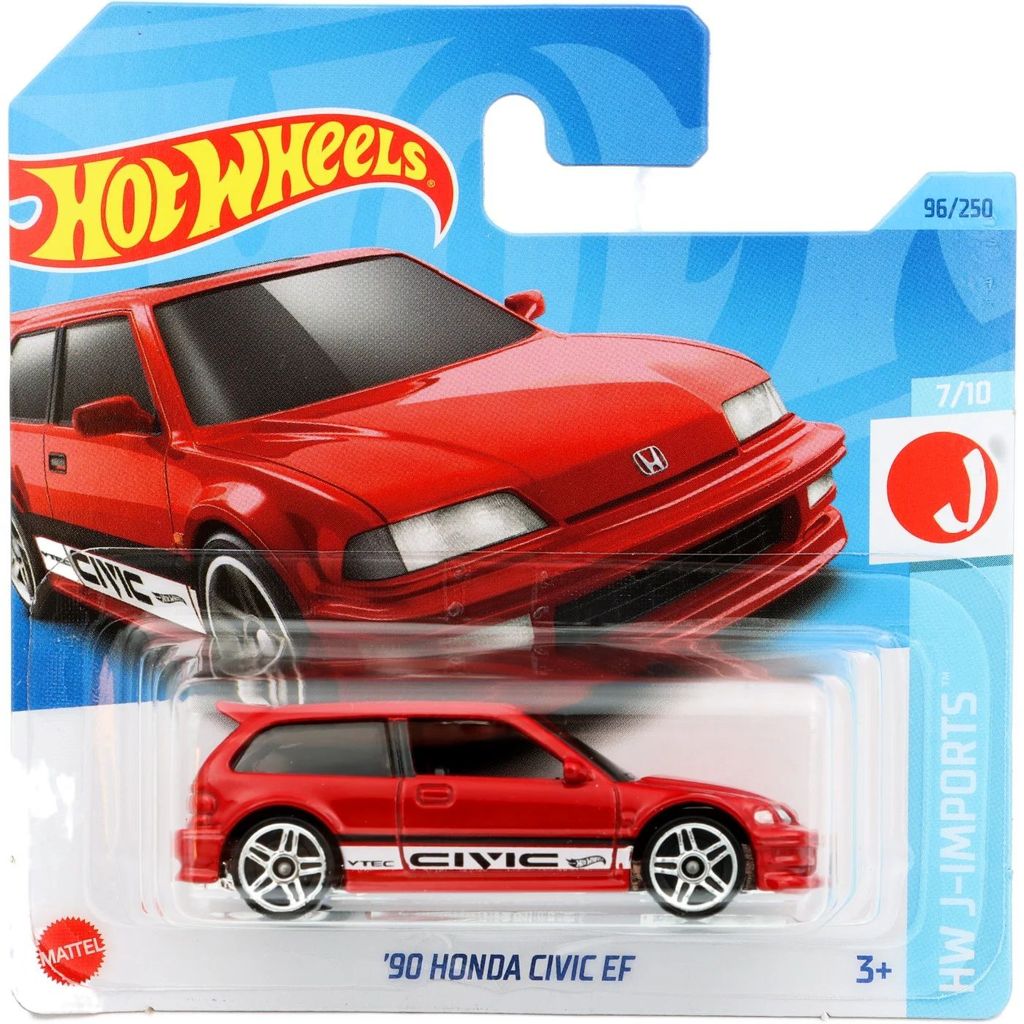 ’90 Honda Civic EF från Hot Wheels och serien HW J-Imports där denna leksaksbil är bil nummer 7/10. Bilen ingår i E-case 2023 (short cards / 5785).