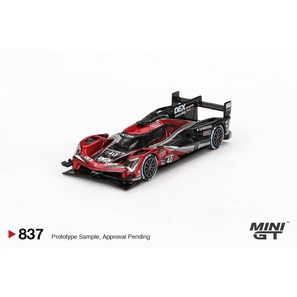 Acura ARX-06 GTP #40 2024 IMSA Sebring 12Hrs Winner No. 40 DEX Imaging som modell från Mini GT i skala 1:64 (ca 7 cm).