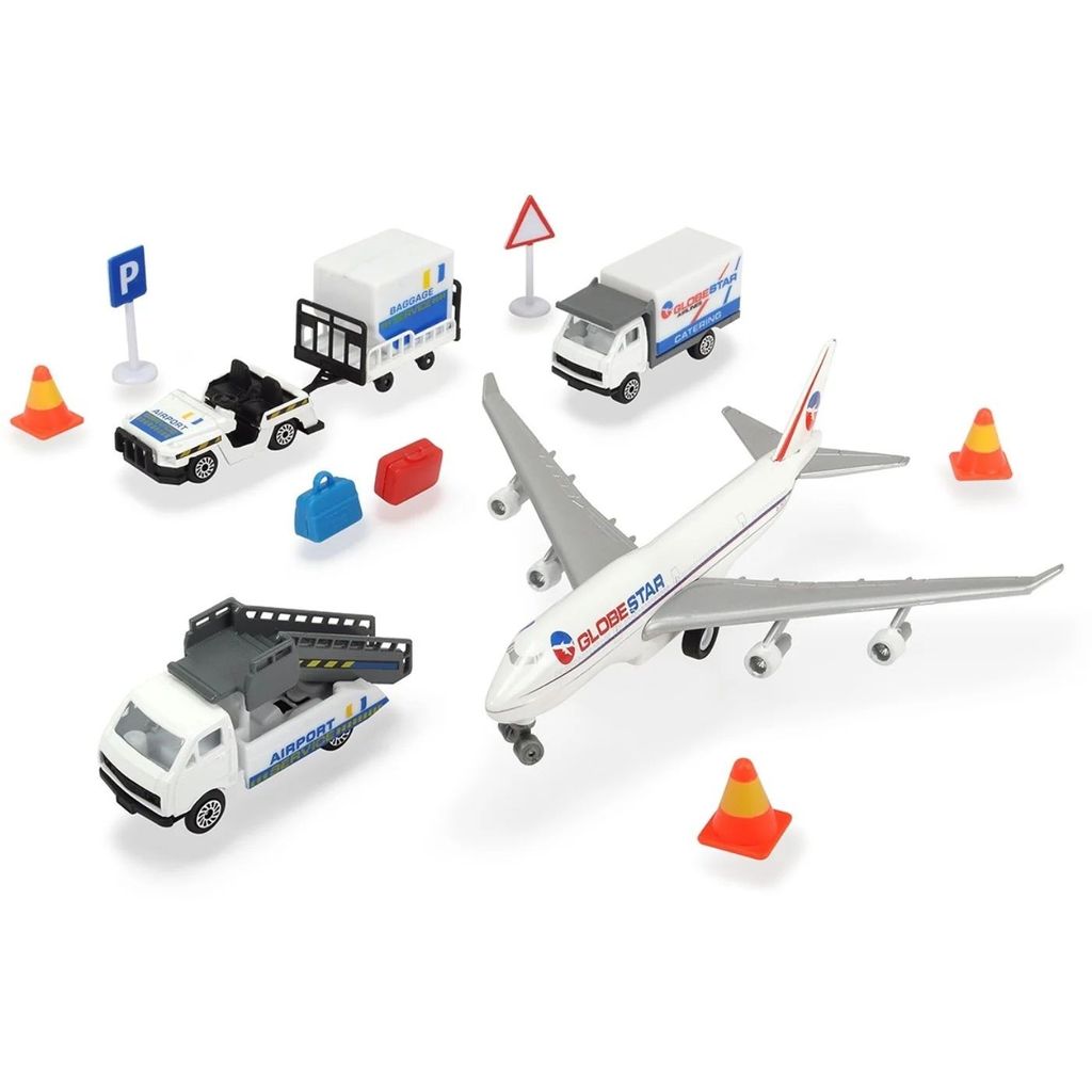 Lekset med flygplan, flygplatsfordon och tillbehör från Dickie Toys.