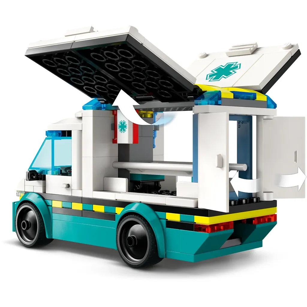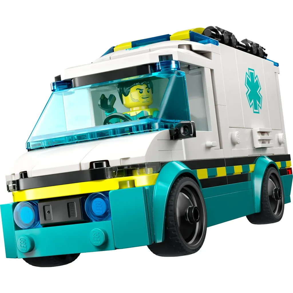 Akutambulans från LEGO och serien City. Två minifigurer och tillbehör medföljer bygget som har nummer 60451.