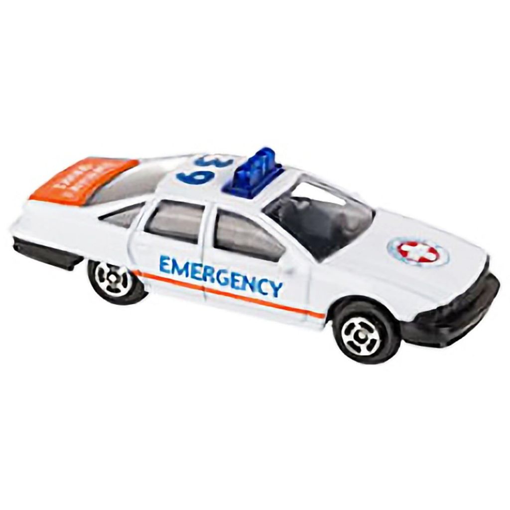 Akutbil från Welly i metall. Akutbilen är vit med svart text och med orange inslag. En fin leksaksbil av bra kvalitet.