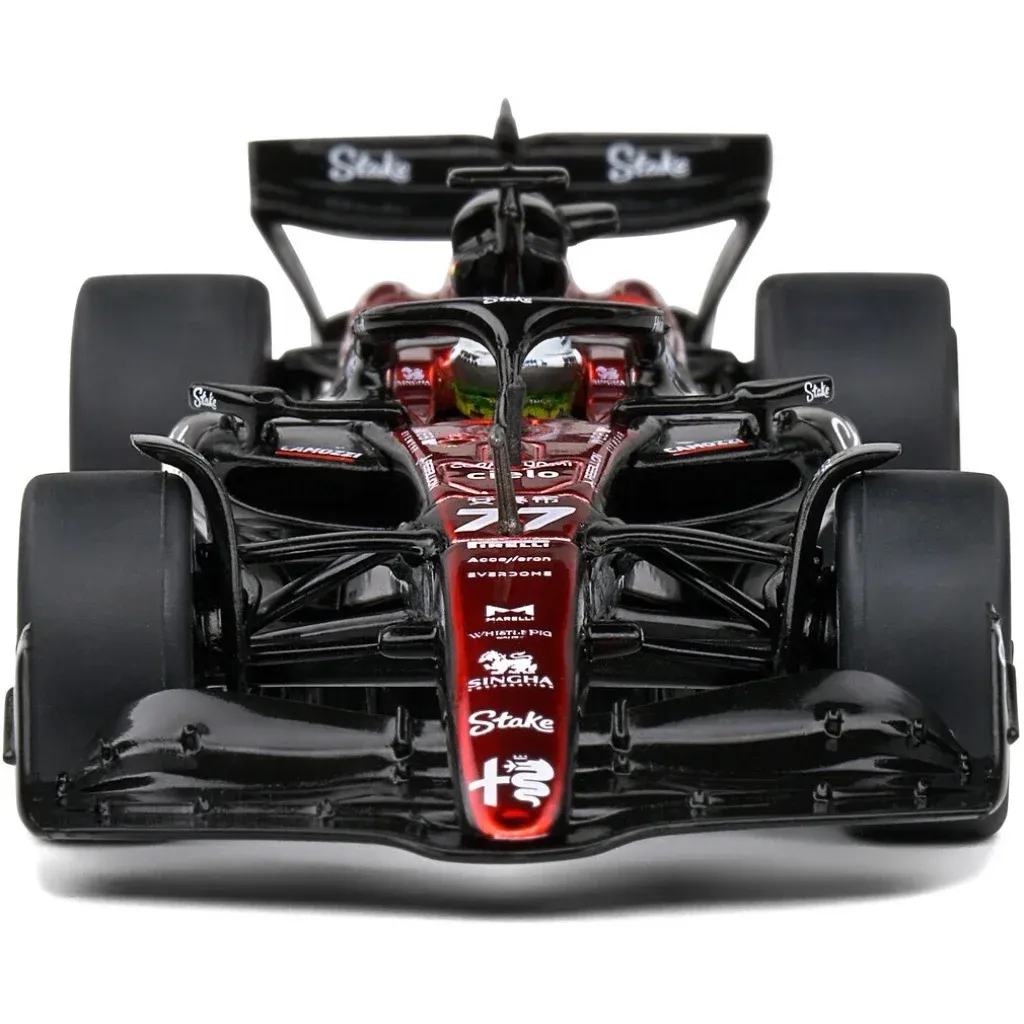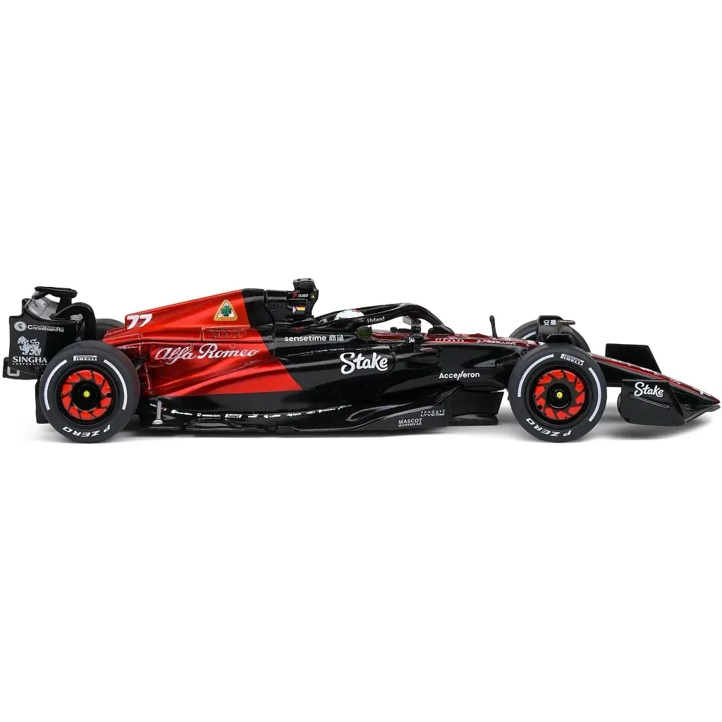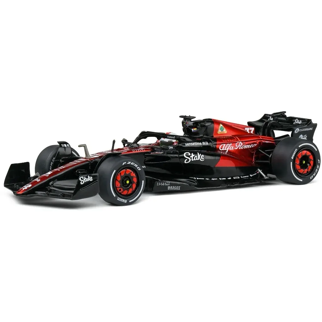 Modell av formel 1-bilen C43 från Alfa Romeo tillverkad av Solido i skala 1:43 (13 cm). Just denna bil, med denna livery och nummer 77, kördes under Canadian GP 2023 av Valtteri Bottas.