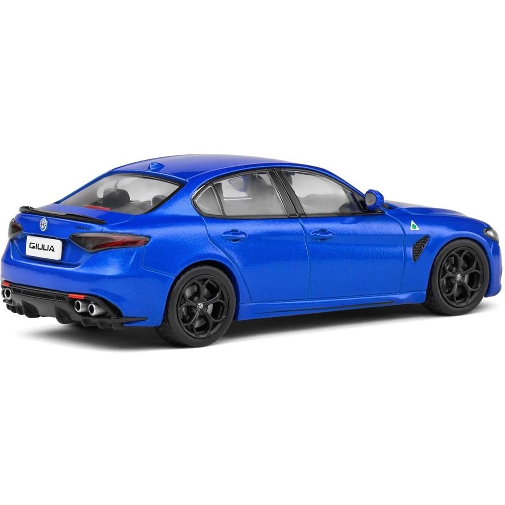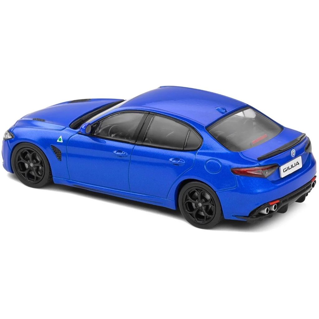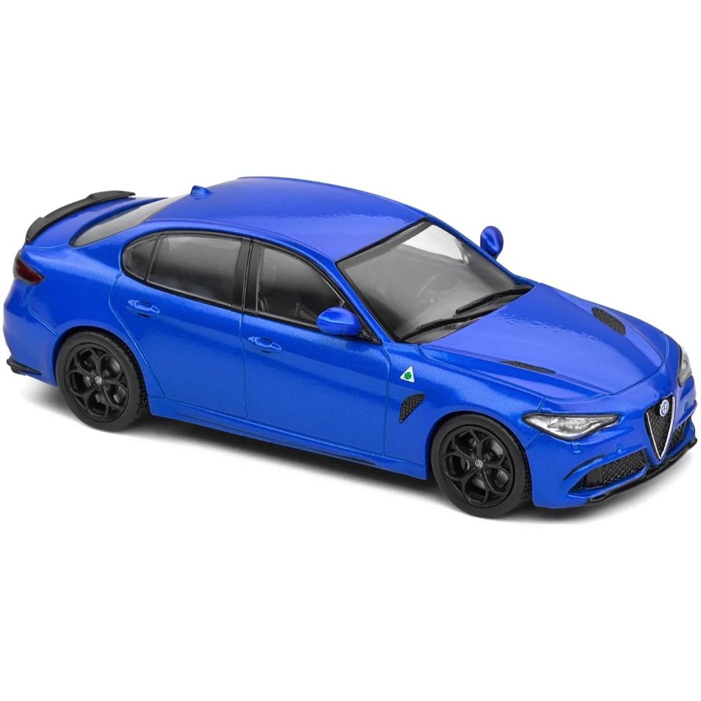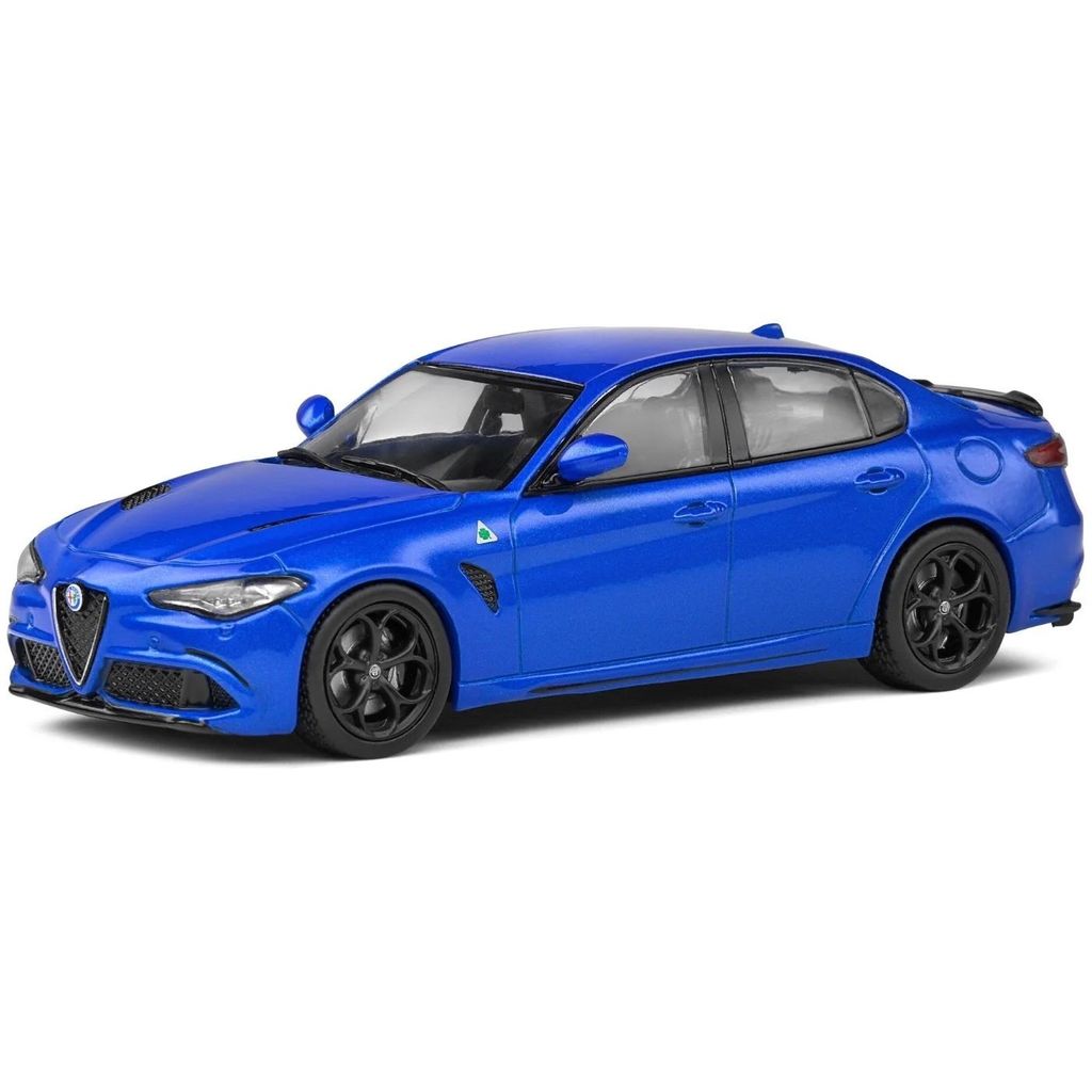 Från franska Solido erbjuder vi denna blå Alfa Romeo Giulia Quadrifoglio i skala 1:43 (11 cm). Årsmodell 2019.
