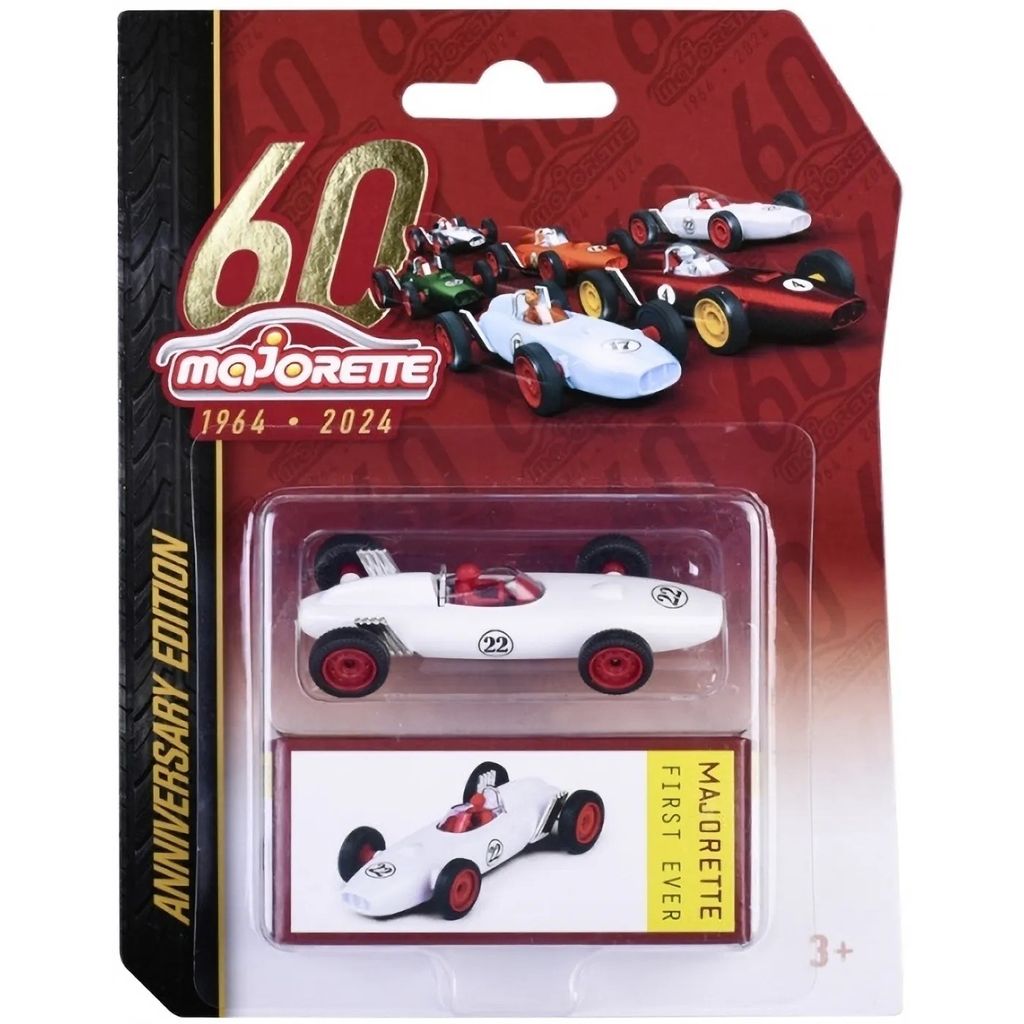 2024 fyller Majorette 60 år och till födelsedagen har Majorette tagit fram denna fina vita leksaksbil. Bilen är en replika av Majorettes första leksaksbil som togs fram 1964.