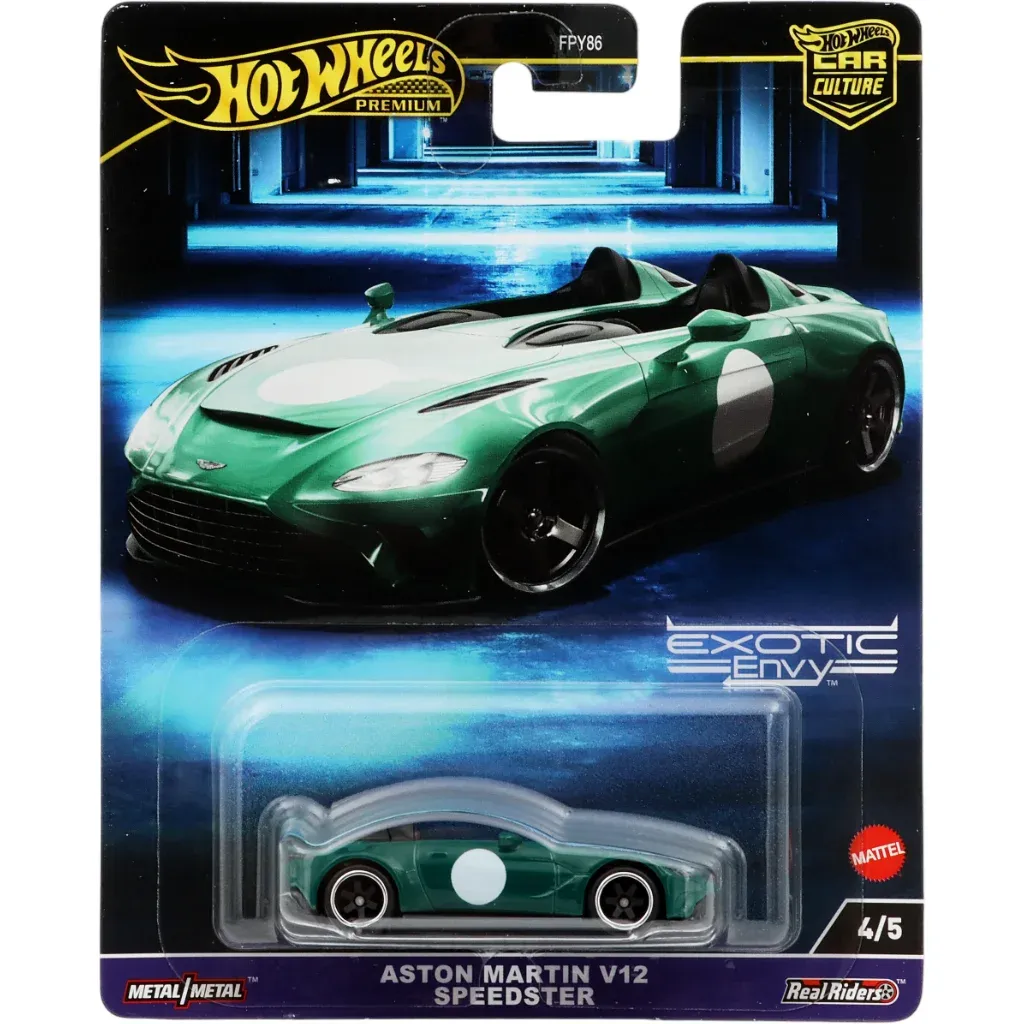 Aston Martin V12 Speedster från Hot Wheels Premium och serien Car Culture: Exotic Envy från 2024 där denna Aston Martin är bil nummer 4 av 5.