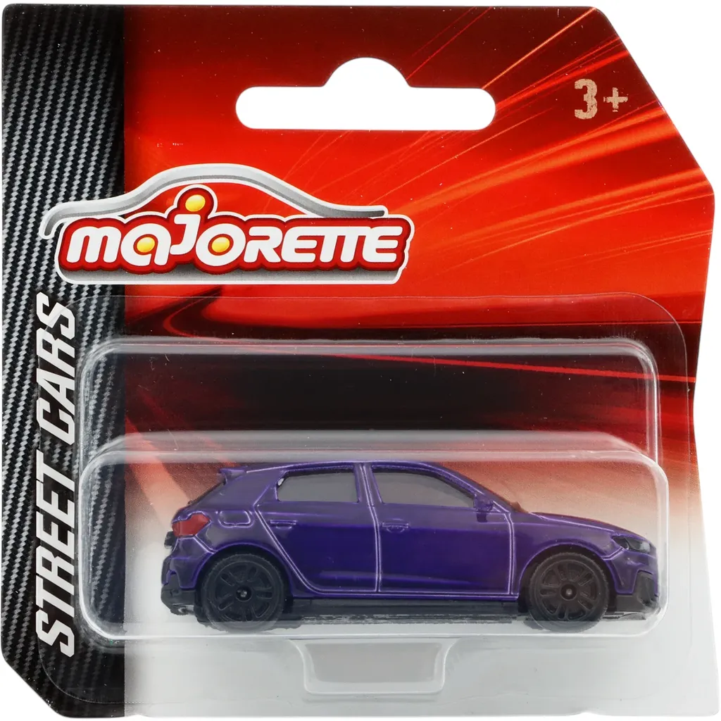 Audi A1 Sportback med en lila lack från Majorette och serien Street Cars. Bilen är tillverkad i metall med plastdetaljer och rekommenderas från 3 år.