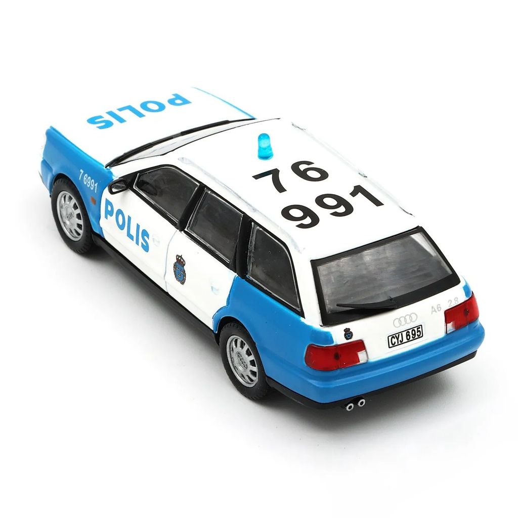 Audi A6 Avant 2.8 som svensk polisbil i skala 1:43 (längd 11 cm). Registreringsnummer är CYJ 695.
