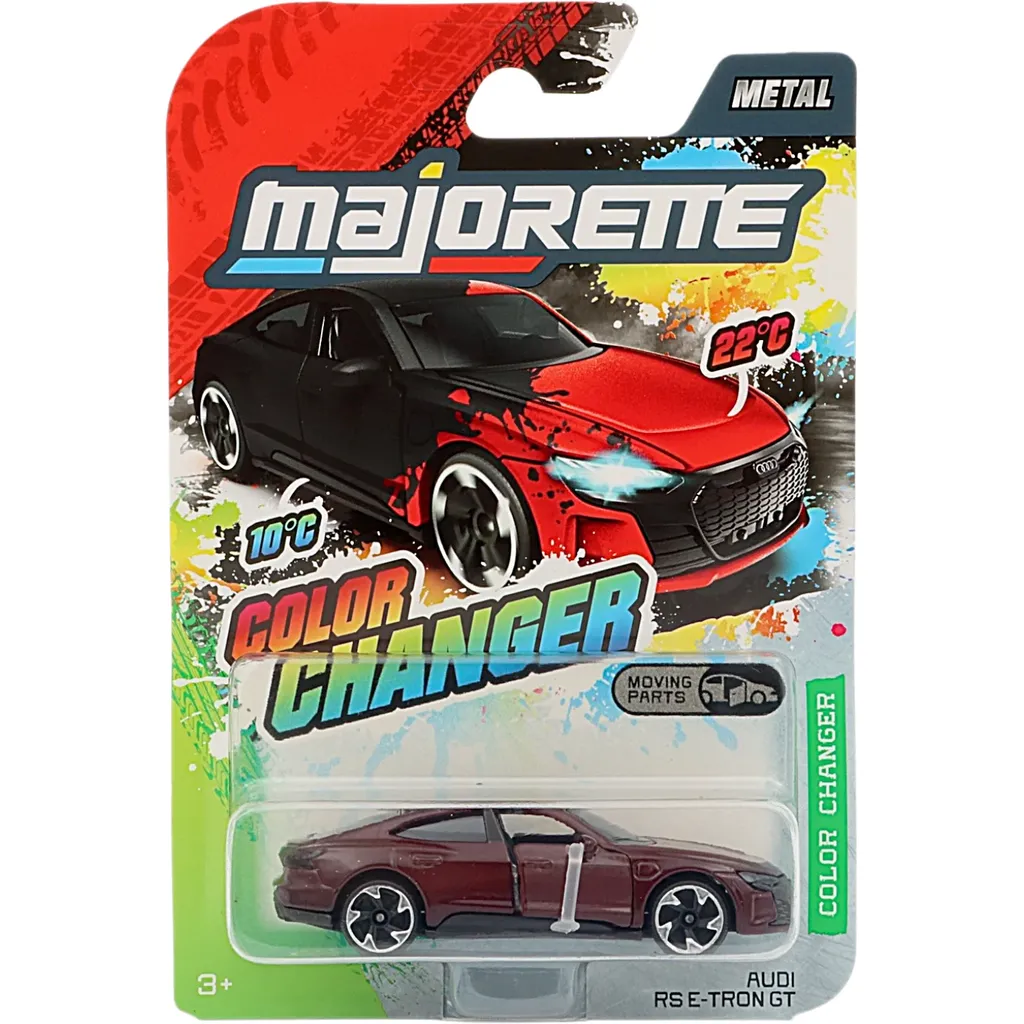 Audi RS E-Tron GT från Majorette och serien Color Changers Premium Cars. Bilen är 7 cm lång och ändrar färg vid temperaturförändringar.