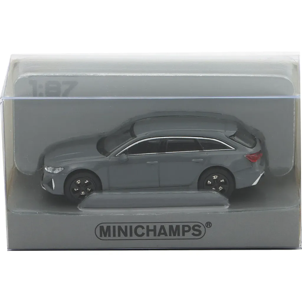 Grå Audi RS6 Avant som liten modellbil i skala 1:87 (5,7 cm) från Minichamps. Årsmodell 2019.