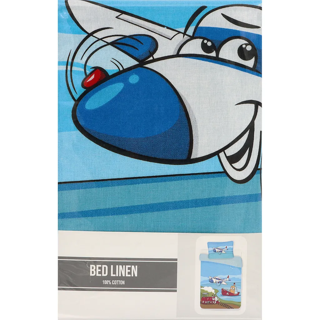 Bäddset med motiv av olika transporter.