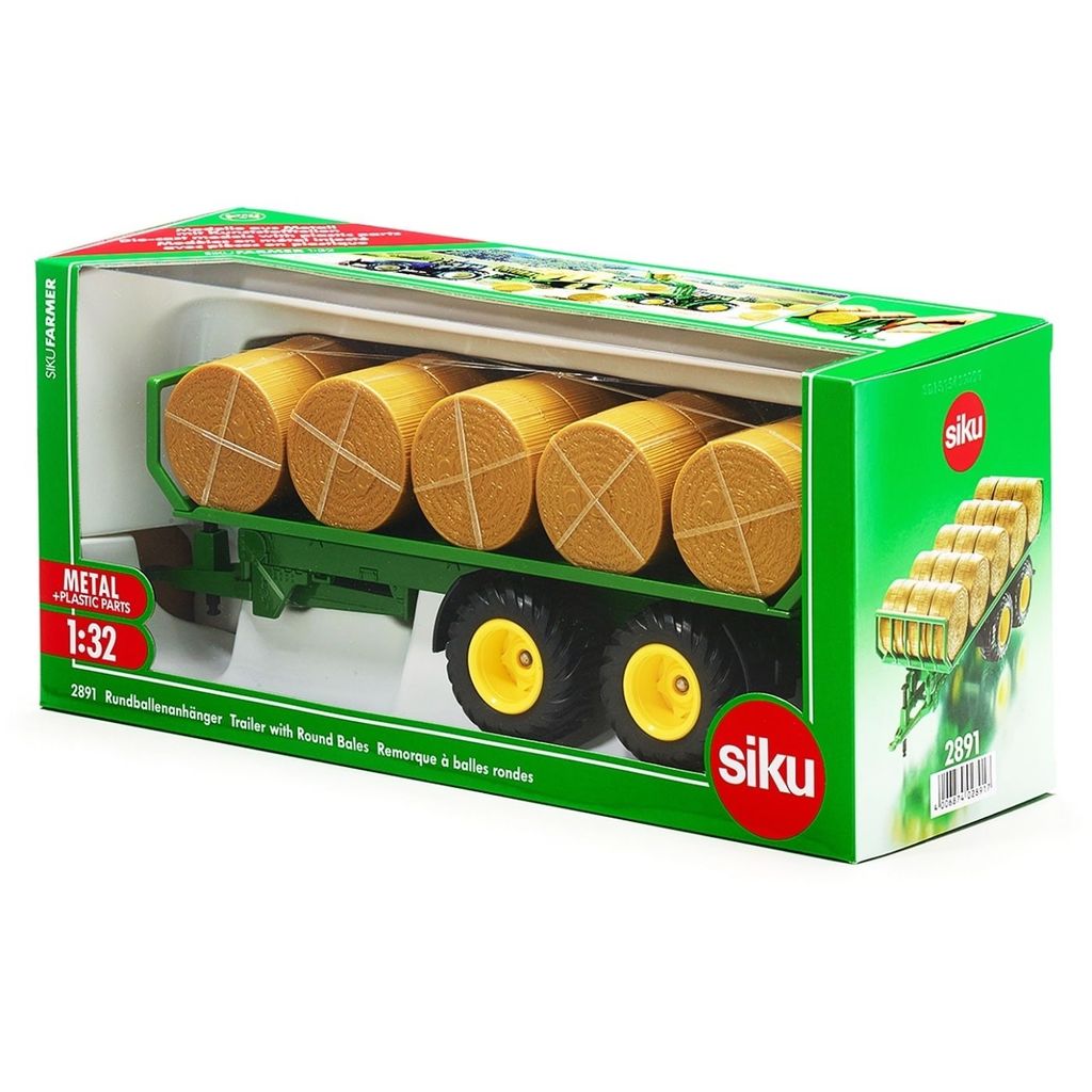 Tvåaxlad balvagn, även kallat rundbalssläp, i skala 1:32 (28 cm) med femton medföljande balar. Trailern är tillverkad av Siku och passar traktorer från Siku i skala 1:32.