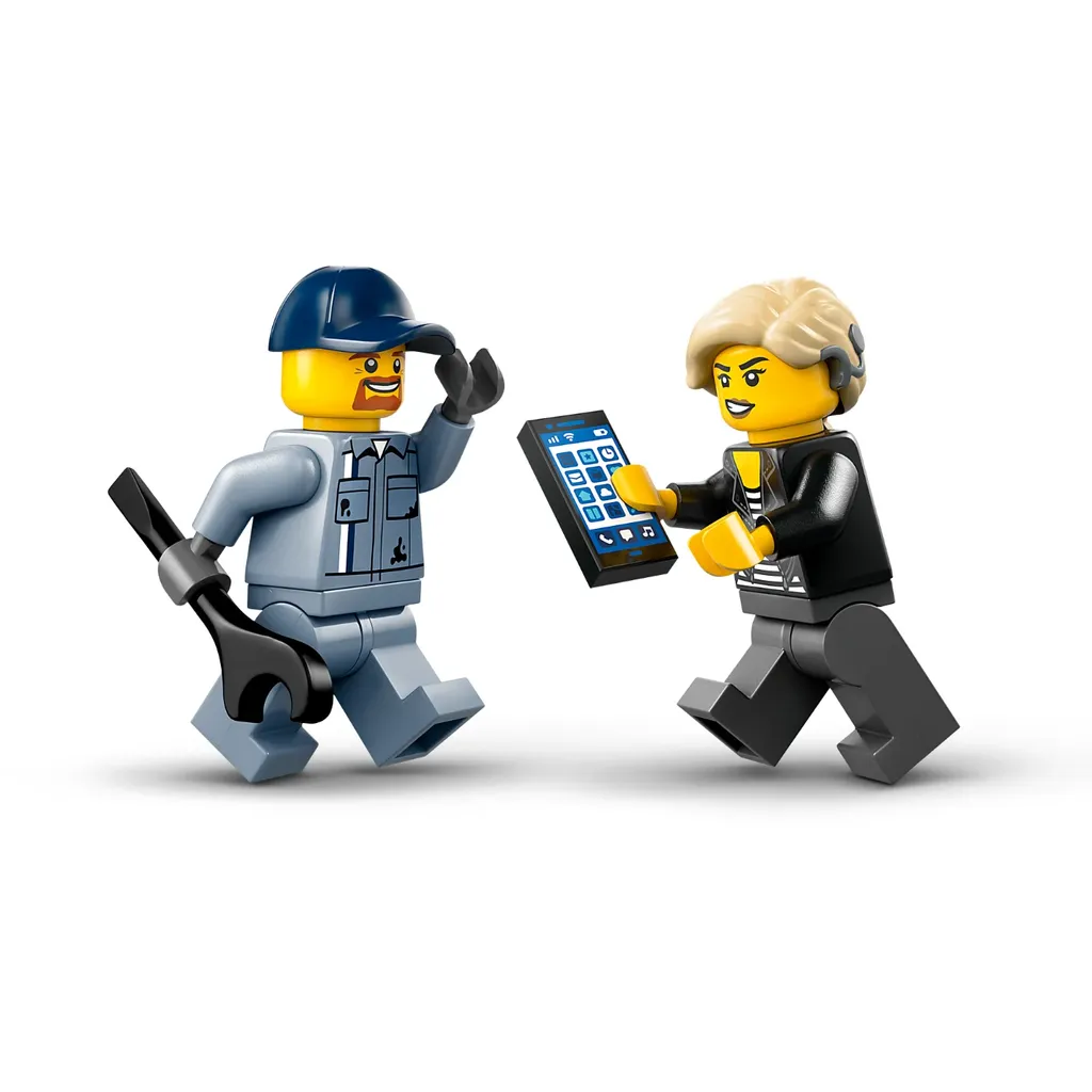 Bärgningsbil med röd sportbil från LEGO och serien City. Två minifigurer och tillbehör medföljer bygget som har nummer 60435.
