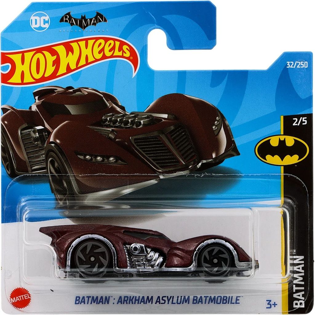 Batman: Arkham Asylum Batmobile från Hot Wheels och serien Batman där denna leksaksbil är bil nummer 2/5. Bilen är nummer 32/250 från 2022 och har ett short card (5785).