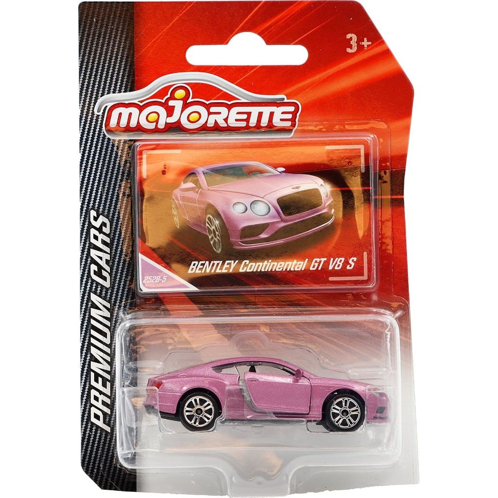 Rosa Bentley Continental GT V8 S från Majorette och serien Premium Cars. Skalan är 1:64 vilket ger oss ca 7 cm leksaks-Bentley.