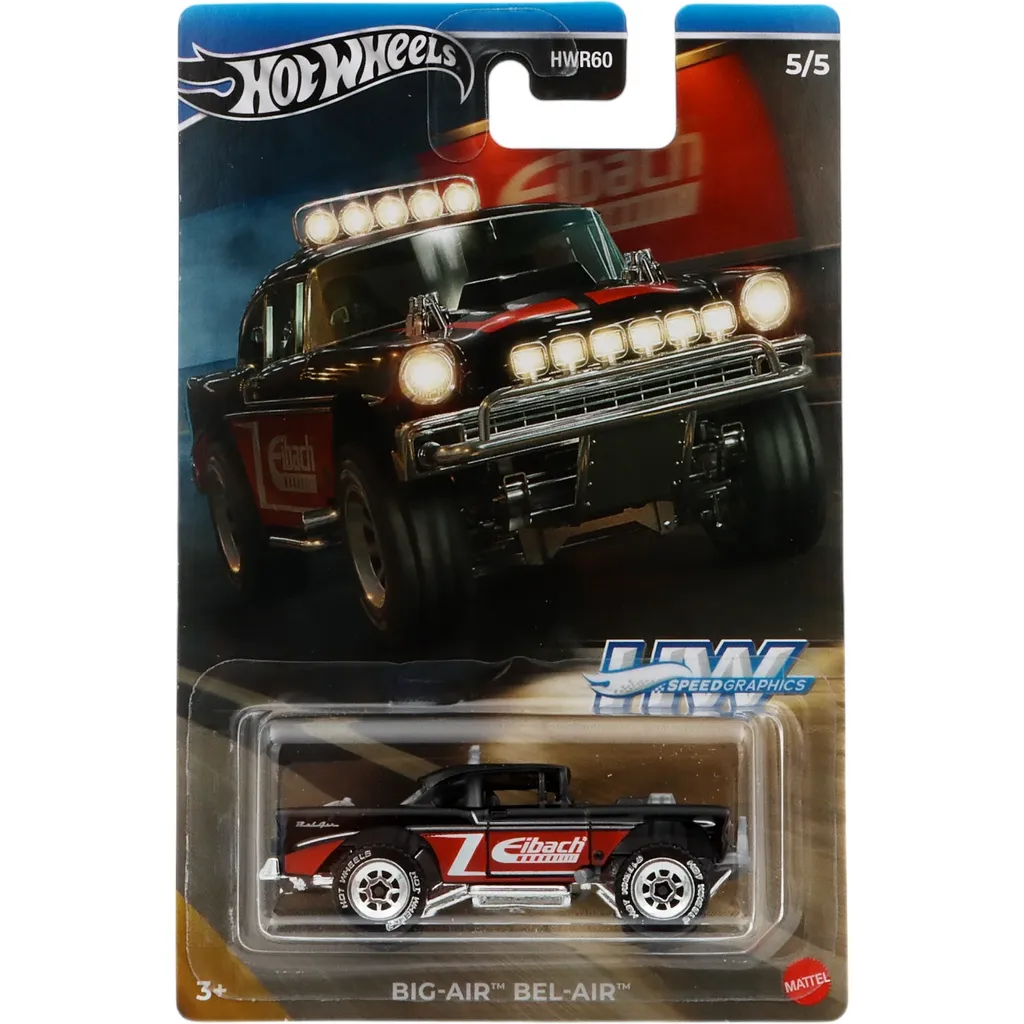 Svart Big-Air Bel-Air (baserad på en Chevrolet Bel Air årsmodell 1956) med Eibach-livery från Hot Wheels och serien HW Speed Graphics från 2024. I serien är denna Cheva bil 5 av 5.