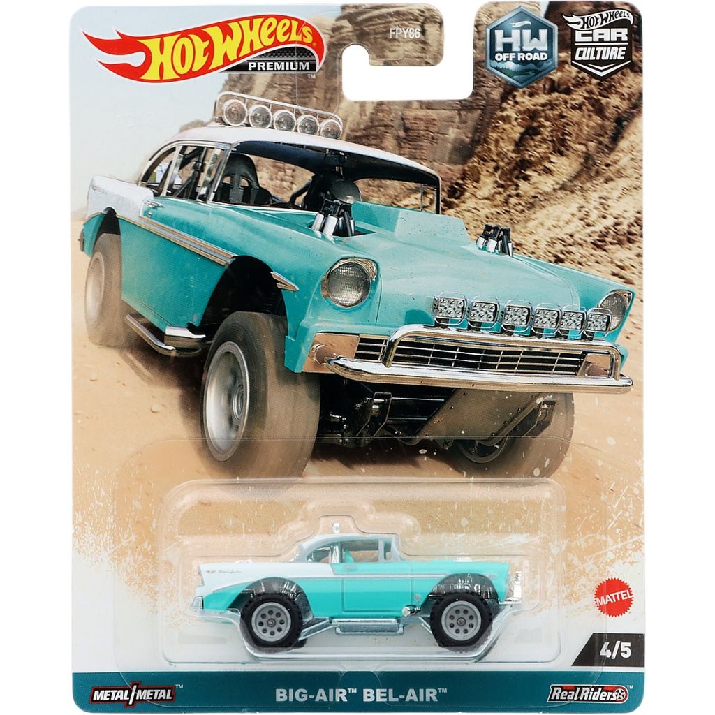 Turkos Big-Air Bel-Air från Hot Wheels och serien Car Culture: HW Off Road från 2023 där denna Chevrolet Bel Air i offroad-version är bil 4 av 5 i setet.