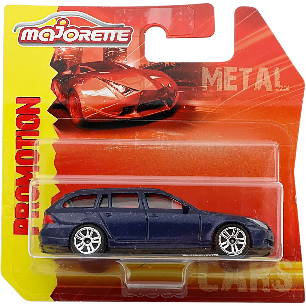 Blå BMW 5 Touring från Majorette i skala 1:61 (7,8 cm).