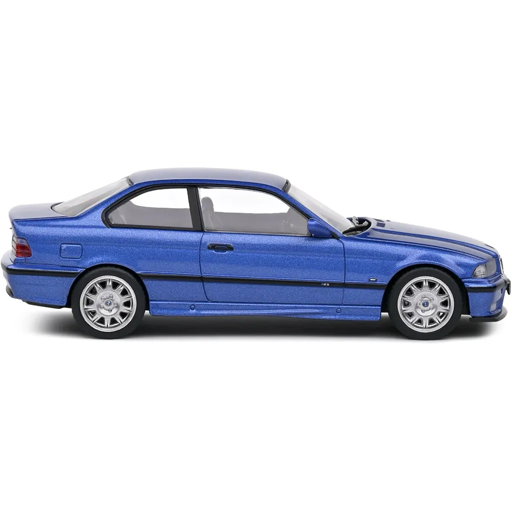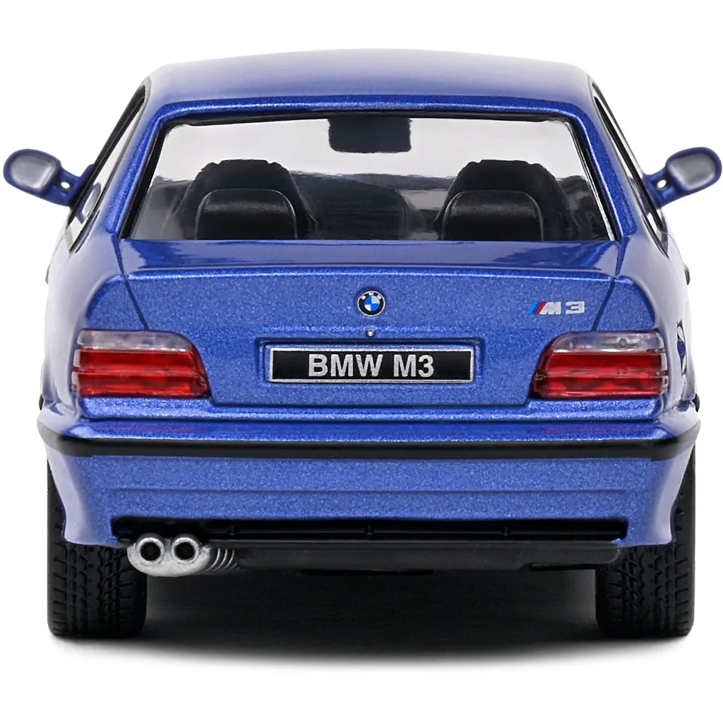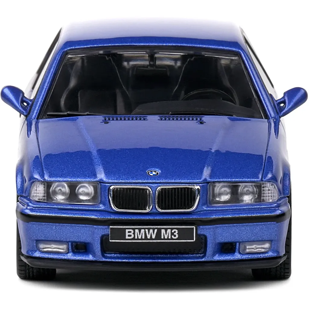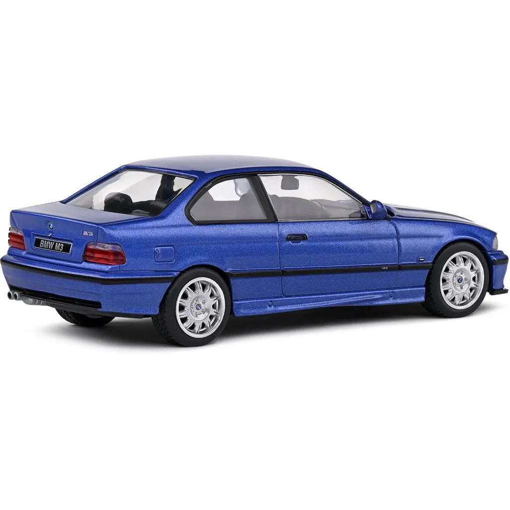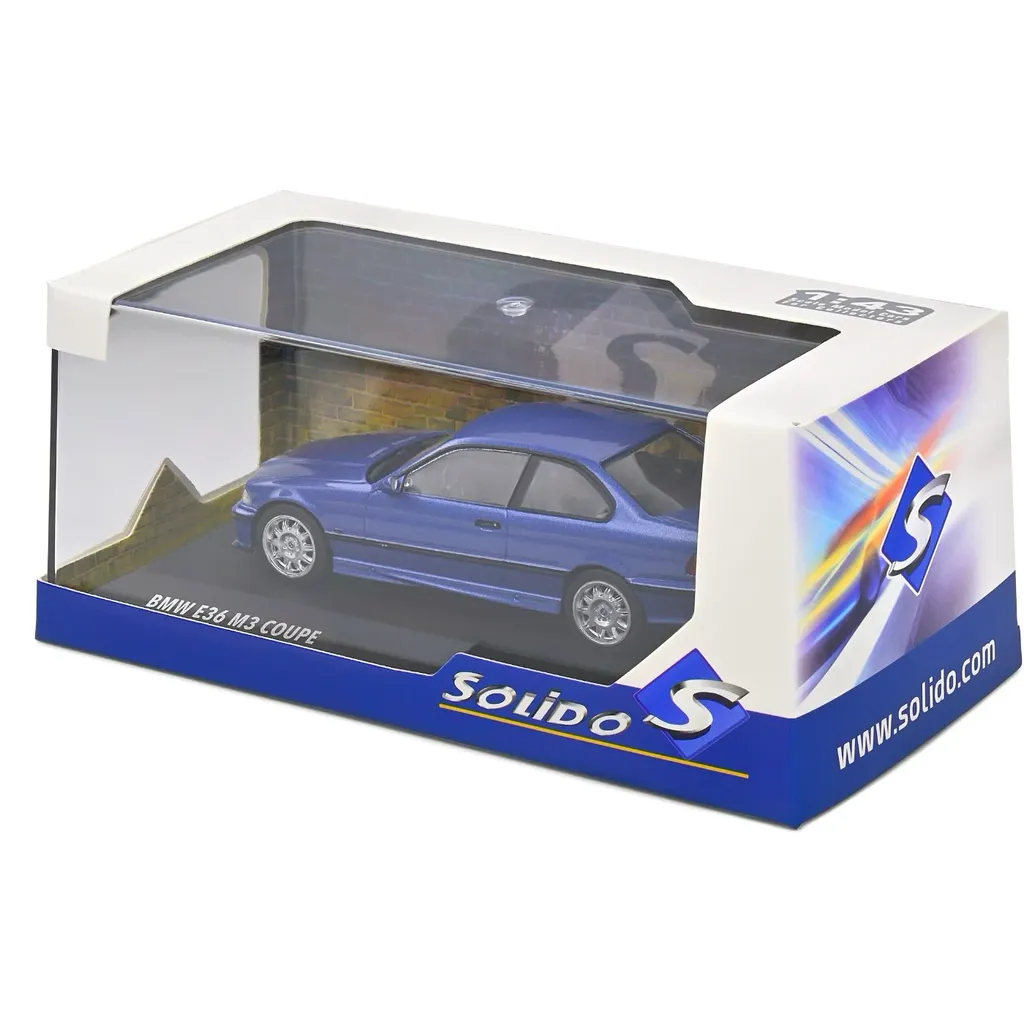 BMW E36 M3 Coupé, årsmodell 1999, som modellbil från franska Solido. Modellen är tillverkad i skala 1:43 vilket för denna modell blir 10,5 cm BMW M3. Färgen är blå (Estoril Blue).