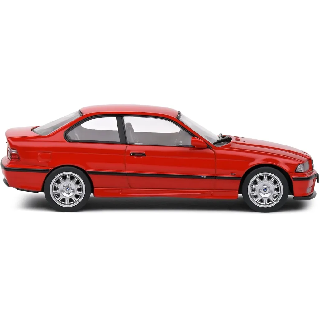 BMW E36 M3 Coupé, årsmodell 1999, som modellbil från franska Solido. Modellen är tillverkad i skala 1:43 vilket för denna modell blir 10,5 cm BMW M3. Färgen är röd (Brilliant Red).