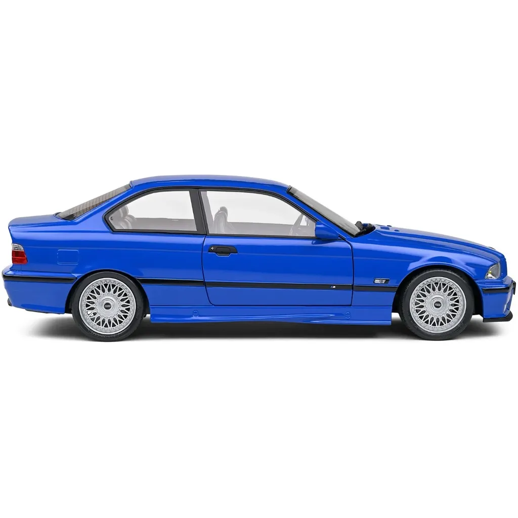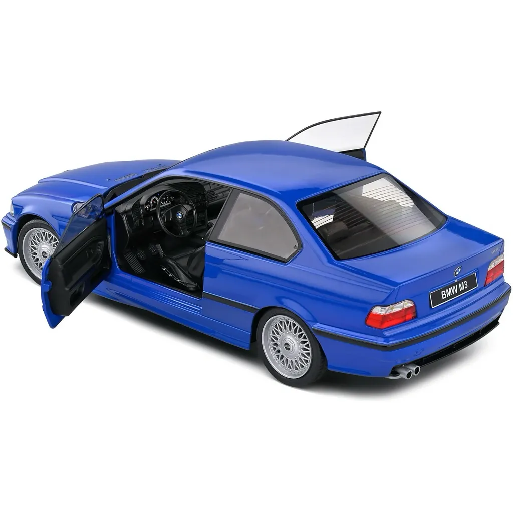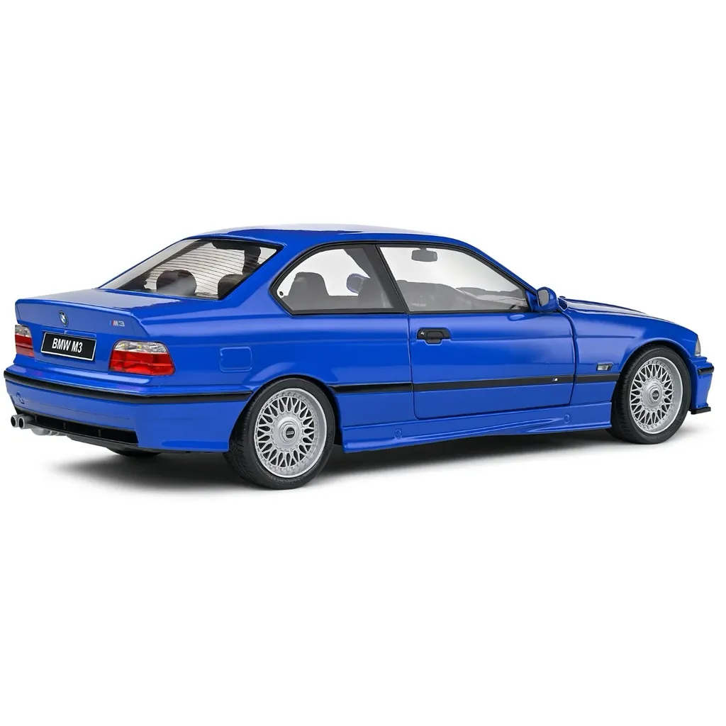 BMW E36 M3 Coupé i blått (Santorin Blue), årsmodell 1996, som modellbil från Solido i skala 1:18 (24 cm).