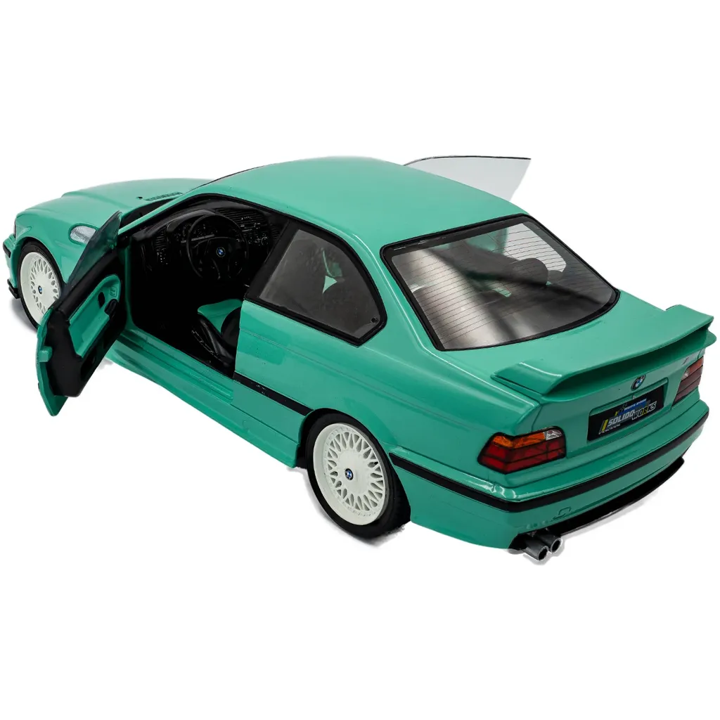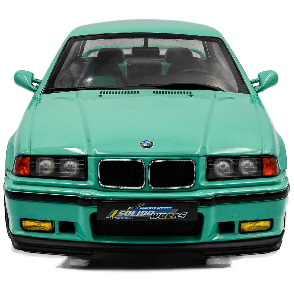 Mintgrön BMW M3 (E36) Coupe, årsmodell 1991, som modellbil tillverkad av Solido i skala 1:18 (24 cm).