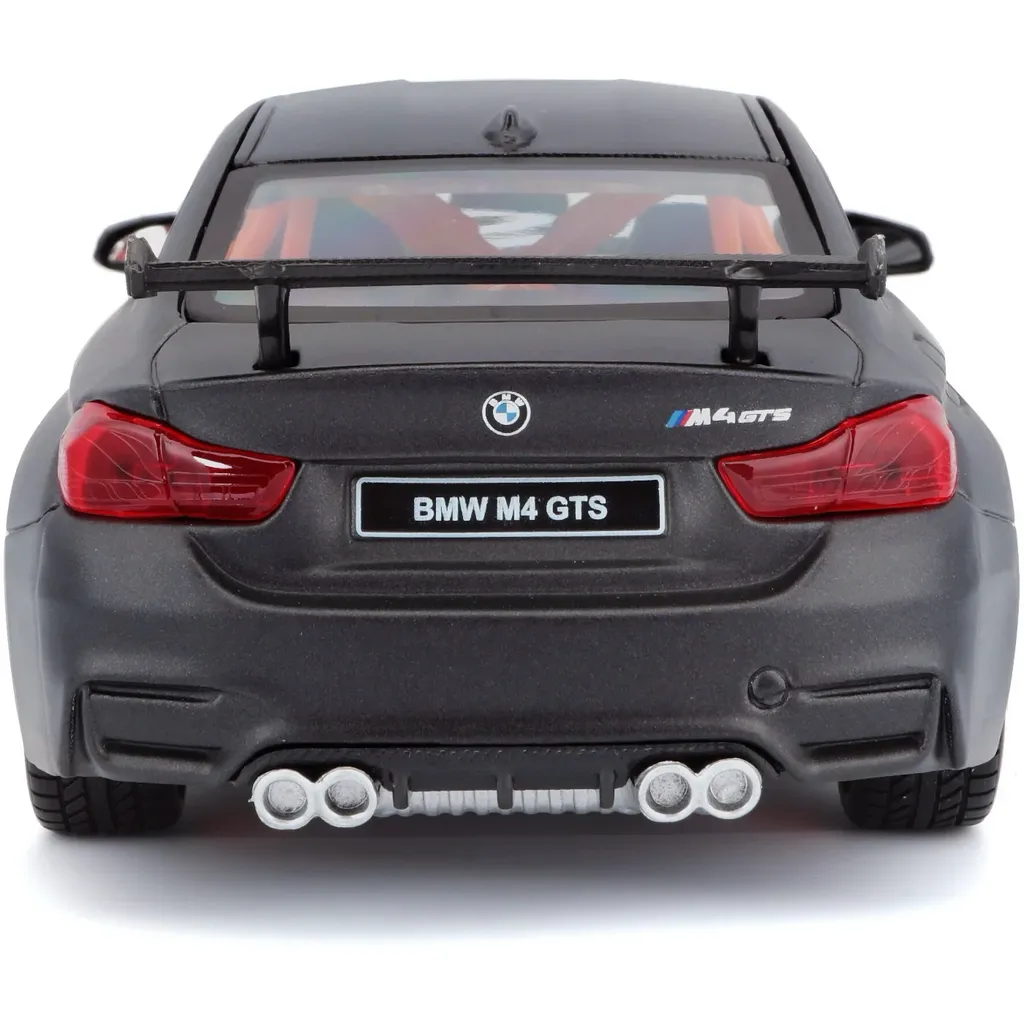 Grå (matt lack) BMW M4 GTS som leksaksmodell från Maisto. Bilen är i skala 1:24 (20,5 cm) och har öppningsbara dörrar.