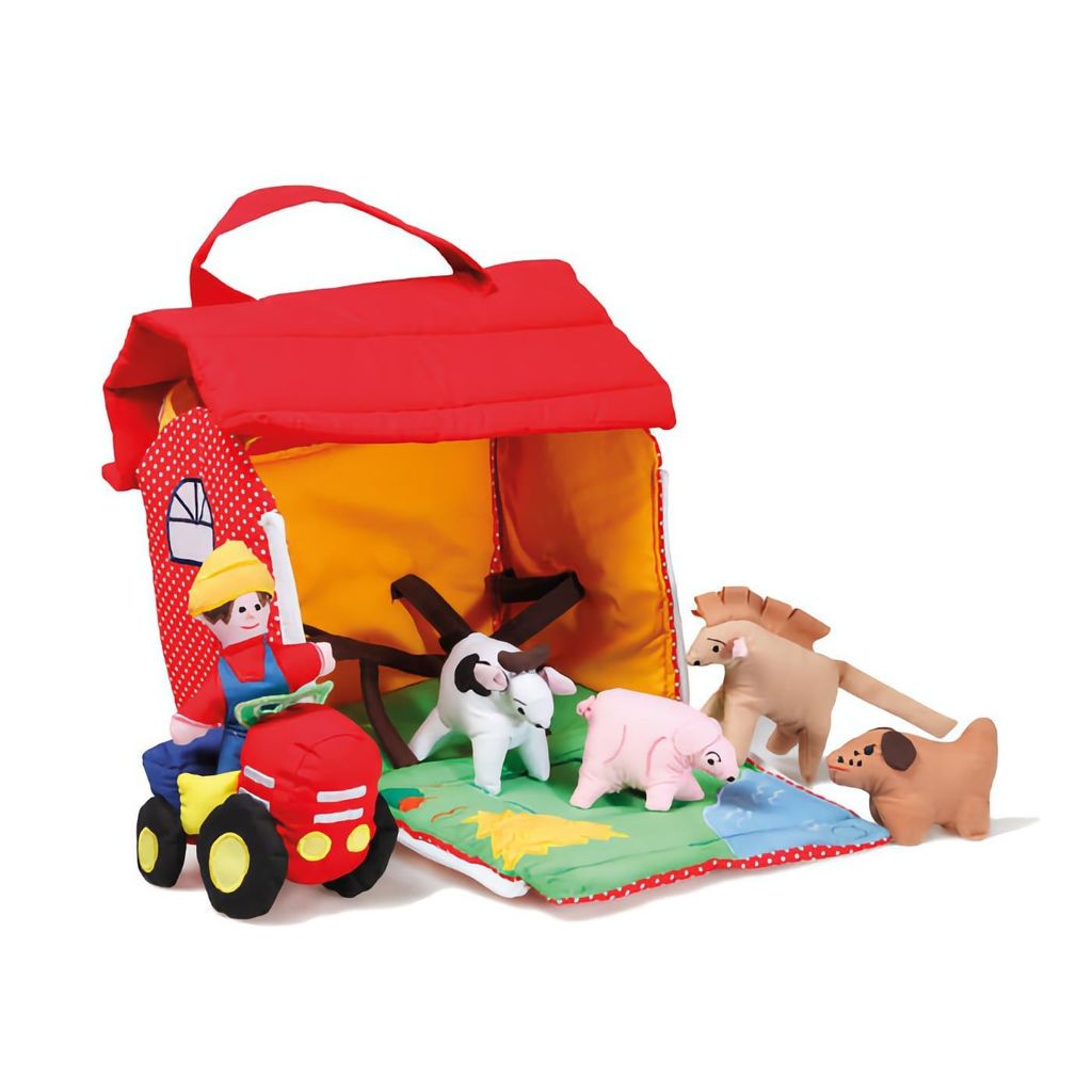 Bondgård i tyg från oskar&ellen med 7 delar, bland annat en traktor och djur.
