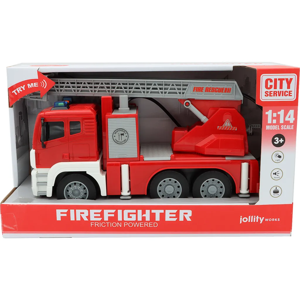 En brandbil med ljud och ljus funktion från Jollity Works.